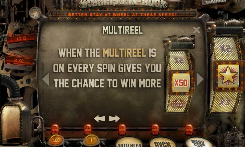 Автомат Steampunk Luck имеет 5 барабанов.
