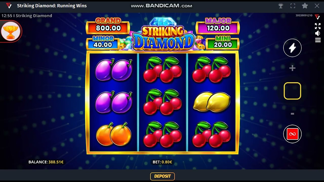 В игре Striking Diamond наблюдается умеренный уровень волатильности, что свидетельствует о более частых, но меньших по размеру выигрышах по сравнению с высоковолатильными слотами. Такая характеристика волатильности позволяет игрокам чаще испытывать моменты успеха, однако средние размеры выплат остаются в пределах, характерных для слотов с умеренной волатильностью.