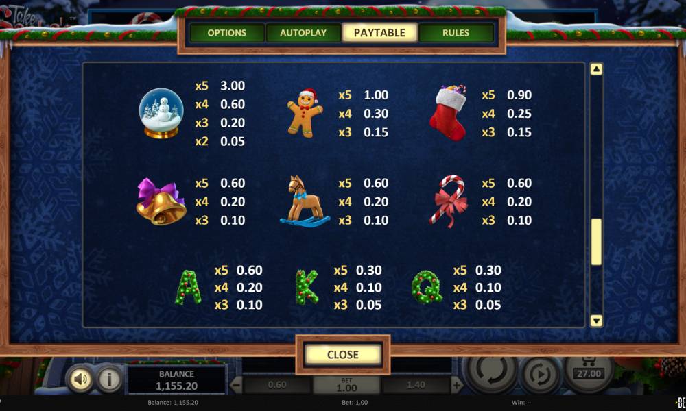 В Take Santa’s Shop mobile slot действуют вышеописанные правила, поэтому отдельно на них останавливаться не будем. Интерфейс простой и понятный.