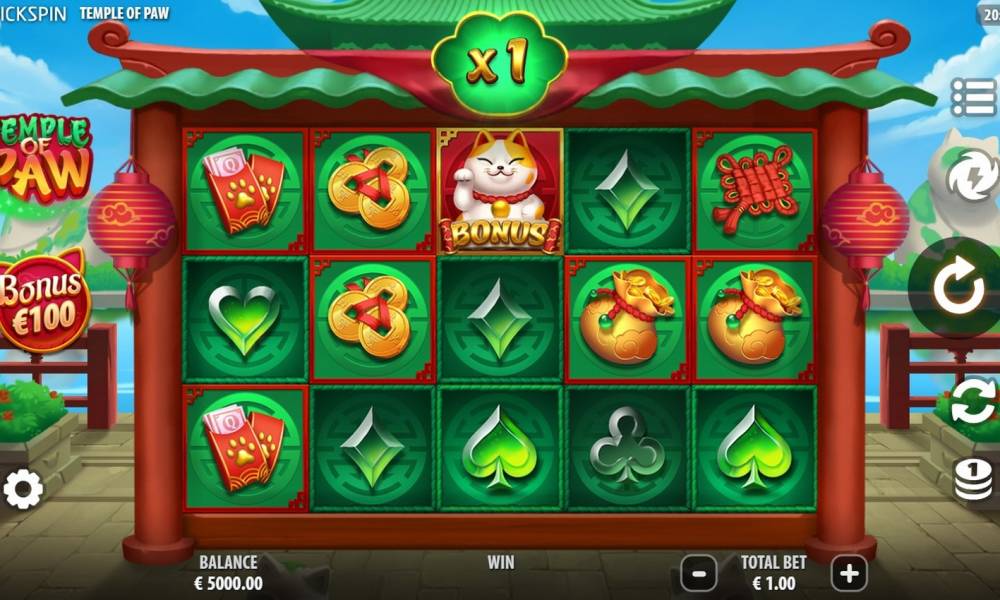 Компания Quickspin порадовала любителей качественных азартных развлечений на азиатскую тематику, представив слот Temple of Paw (Храм Лапы). Главное действующее лицо игры – фигурка Манэки-нэко, которая выступает в роли Scatter и обещает геймерам необыкновенную удачу и солидные вознаграждения. Несколько денежных котов с поднятой лапкой гарантирует серию бесплатных вращений, во время которых все полученные выигрыши будут умножаться на возрастающий множитель. Японская магия может принести крупные выплаты вплоть до х7 333 к выбранной ставке.