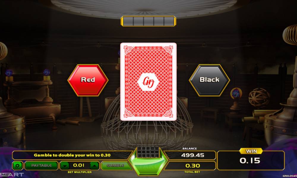 Все деньги, начисленные по результатам раунда, можно либо сразу забрать и вывести на основной счет, либо дать старт риск-игры по равным шансам, которая запускается в отдельном окне. Здесь нужно угадывать цвет закрытой карты, чтобы удвоить количество кредитов. Подряд можно действовать несколько раз.