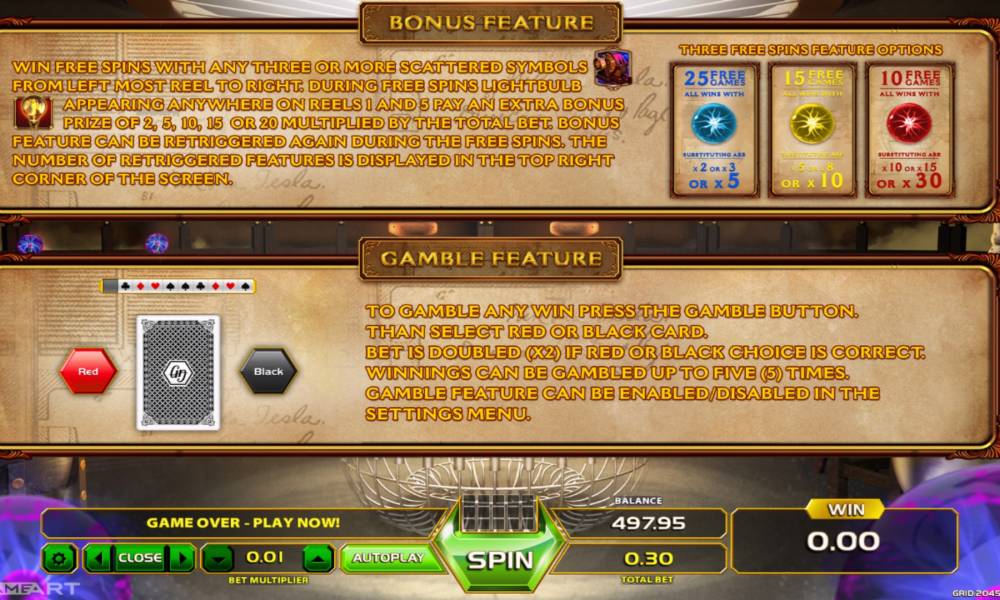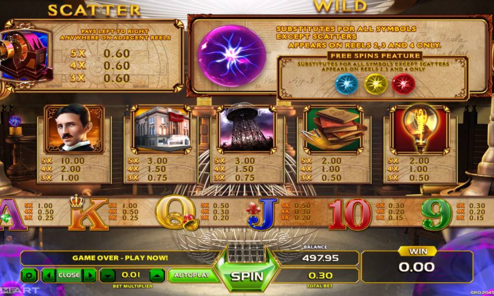 Вероятно, в числе разработчиков из компании GameArt также есть фанаты Теслы, которые инициировали выпуск игрового автомата Tesla: Spark of Genius. Обзору данной модели посвящена статья от Casinoz.