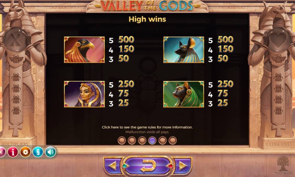 Игры на удвоение в Valley of the Gods нет. Призовые возможности обсуждаются далее в обзоре.