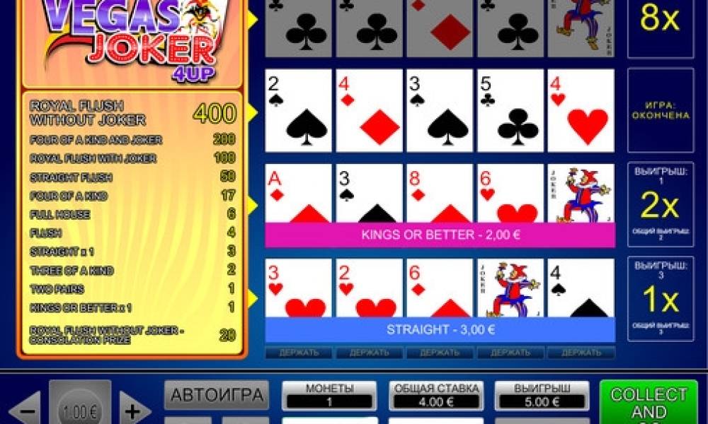 Играть бесплатно в демо Vegas Joker 4Up Poker без регистрации