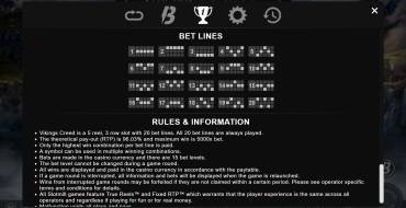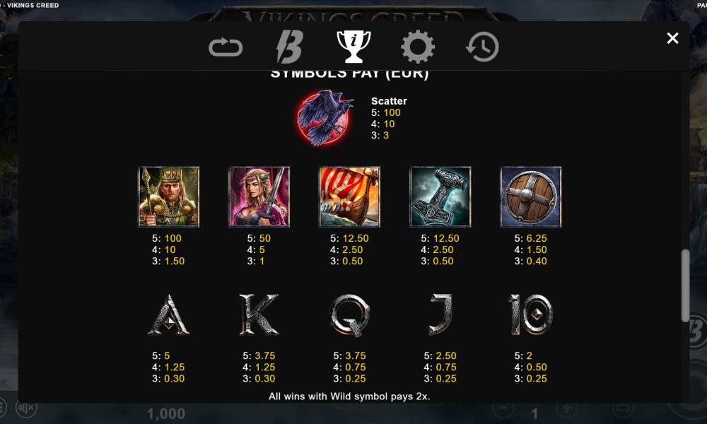 Максимальная ставка в слоте Vikings Creed равна 50 долларам.