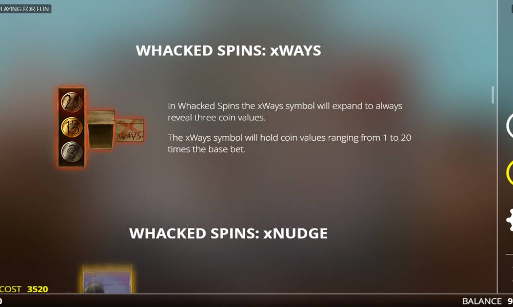 xWays — открывает от 2 до 4 одинаковых знаков, увеличивая при этом число линий для выплат. В раунде Whacked Spins показывает всегда три одинаковых монеты стоимостью х1-х20.