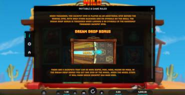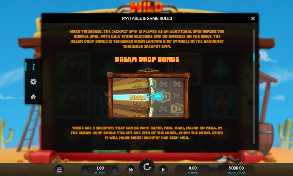 Dream Drop Bonus. Запускается после выигрыша в Jackpot Spin. Это колесо фортуны, на котором разыгрываются все 5 джекпотов. Ячеек без призов нет, то есть если до этого раунда дошло дело, то гемблер точно получит какой-то приз.
