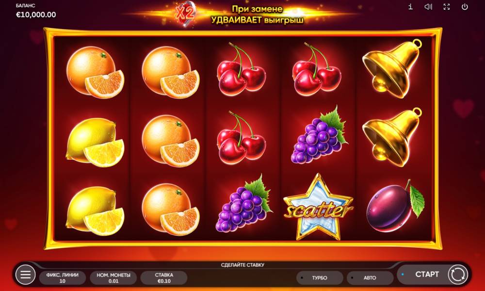 Слот Wild Love от провайдера Endorphina имеет поле 5х3 с 10 линиями выплат.