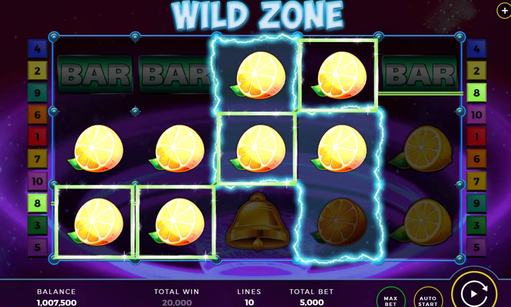 В конце 2020 года провайдер Bally выпустил Wild Zone — слот в ретро-стиле с простым интерфейсом и 2 видами риск-игры. Бонусная функция связана с работой Wild и срабатывает очень часто. Выплаты выпадают на 10 фиксированных линиях. Поле небольшое, но и символов в игре участвует немного, поэтому выигрышные комбинации выпадают часто.