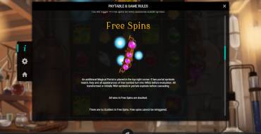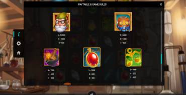 Попадая в слот Wildchemy, игроку предстоит сразу разобраться с правилами. Они есть в меню (три горизонтальные полосы). Там же представлена таблица выплат, описаны функции и бонусы аппарата. После изучения и базовых настроек (музыка, звук), стоит приступать к игре: