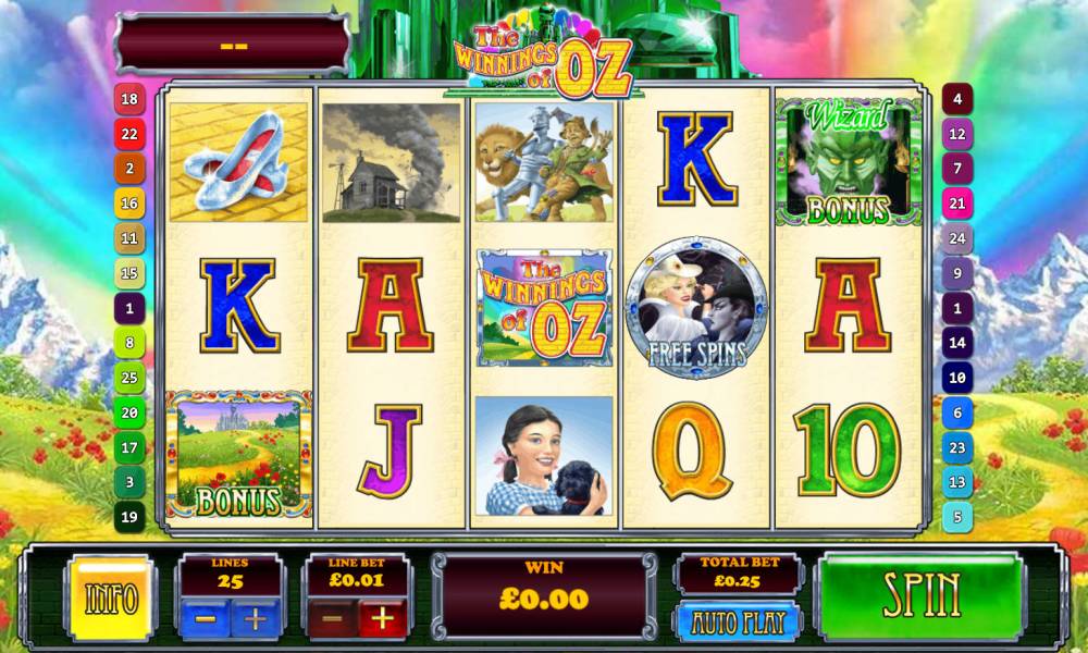Winnings of Oz – многофункциональный видеослот с пятью барабанами, двадцатью пятью линиями, специальными символами, несколькими бонусными раундами, бесплатными запусками и многим другим, что не оставит равнодушным ни одного фаната азартных развлечений.