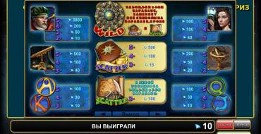 Scatter (книга) можно увидеть во всех пяти колонках. Данный символ оплачивается независимо от расположения, а сумма выигрыша рассчитывается по общей ставке (три, двадцать или сто).