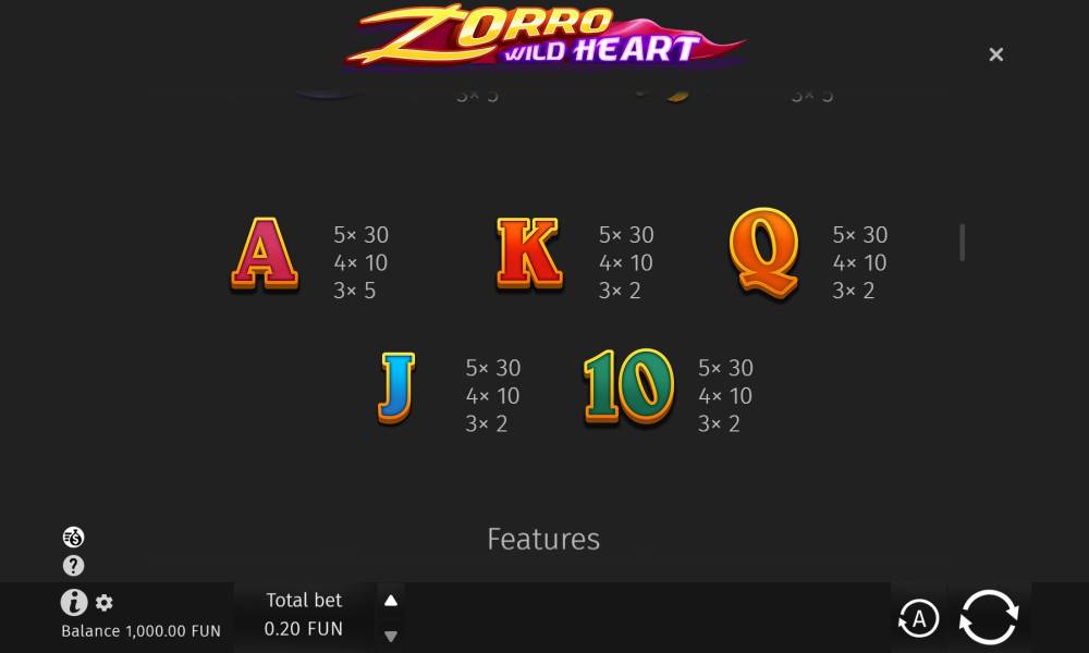 Минбет в слоте Zorro Wild Heart равен 20 центам.