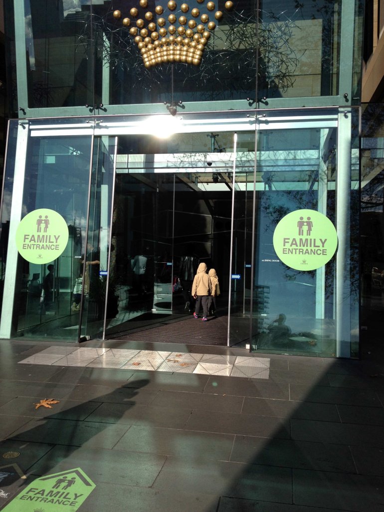 Crown Casino в Мельбурне расположено на берегу реки Ярра и является одним из самых популярных казино в Австралии. Посетителями игорного заведения обычно становятся туристы, которые хотят либо повеселиться за игровым столом, либо выиграть крупную сумму денег. Недавно руководство казино решило поставить на одном из своих подъездов, расположенных на набережной реки Ярра, знак «семейный вход».